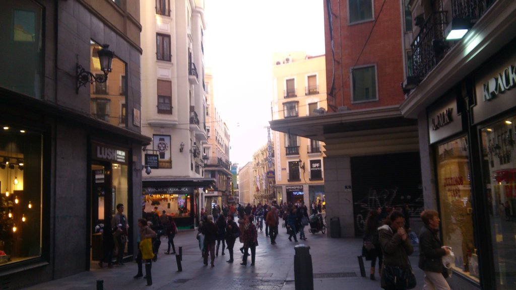 Notar la diferencia entre la cantidad de gente por el barrio del centro de Madrid,